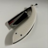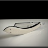 This new is made form a RWL 34 Damasteel and is a 7/8 full hollow grind straight edge, finished in a mirror chrome polish , the scales are made from a Beautiful resin Ivory with carbon fiber inlays.