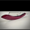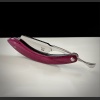 This new is made form a RWL 34 Damasteel and is a 7/8 Quarter hollow grind straight edge, finished in a mirror chrome polish , the scales are made from Purple Heart wood with Silver carbon fiber inlays.